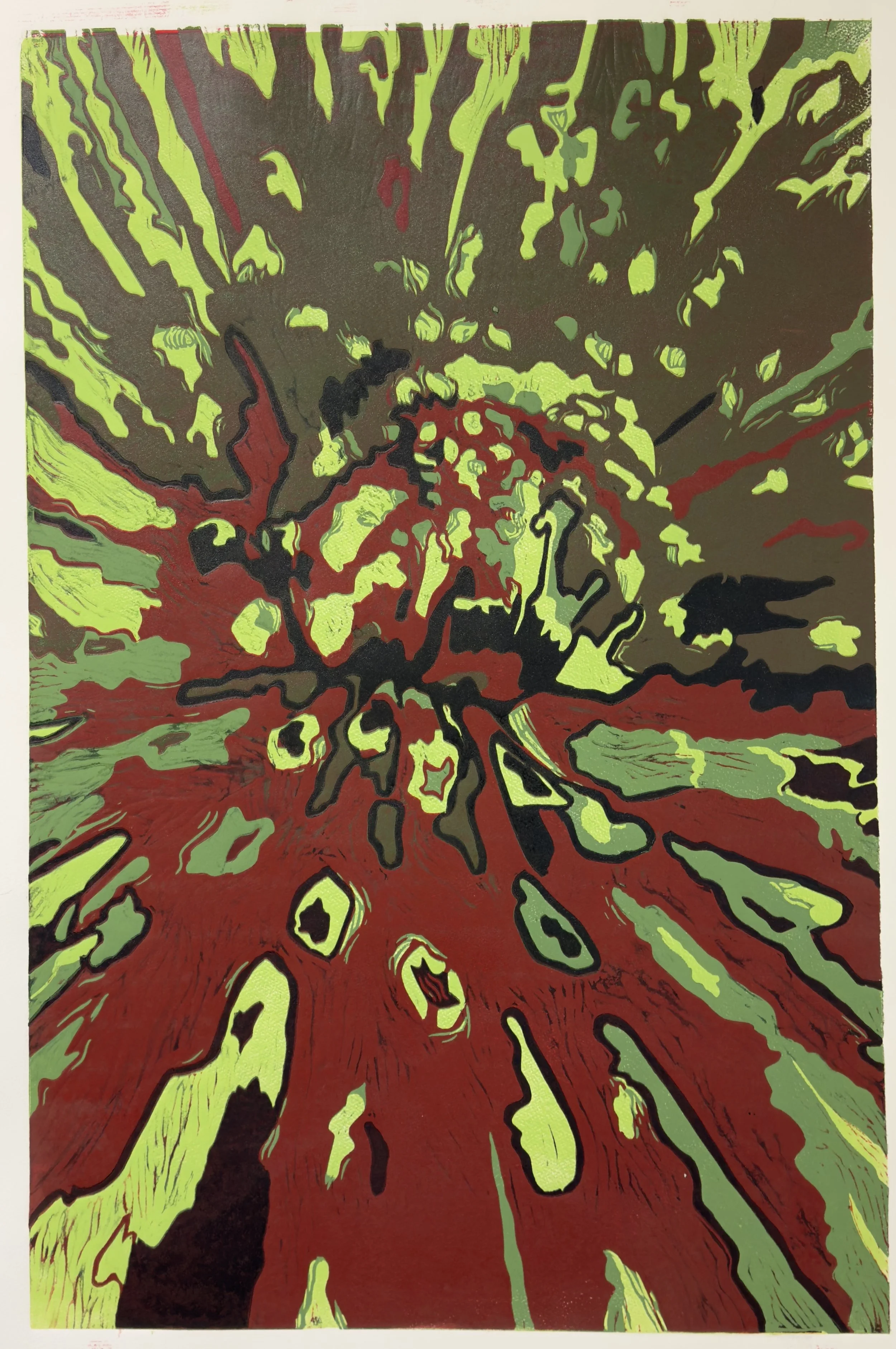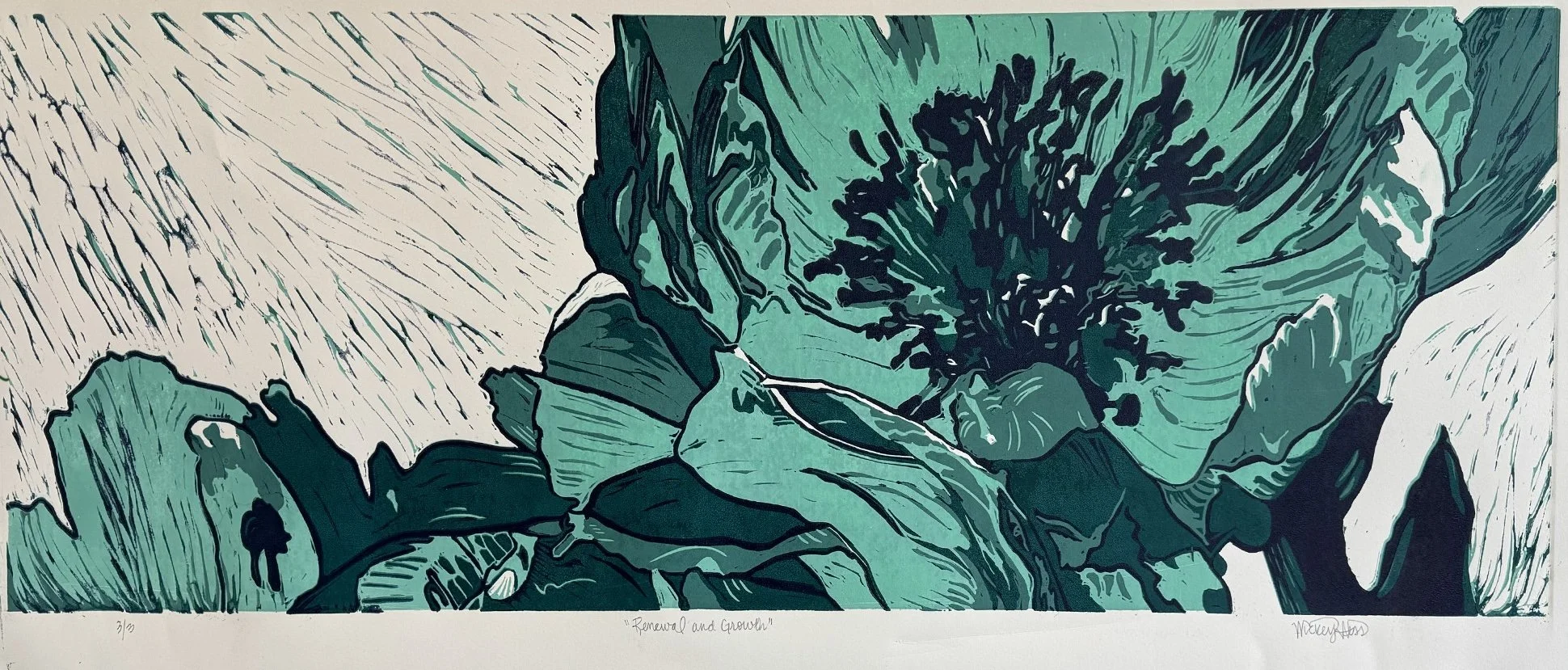 12” x 36” “Renewal and Growth” Four-color Reduction Linoleum Print