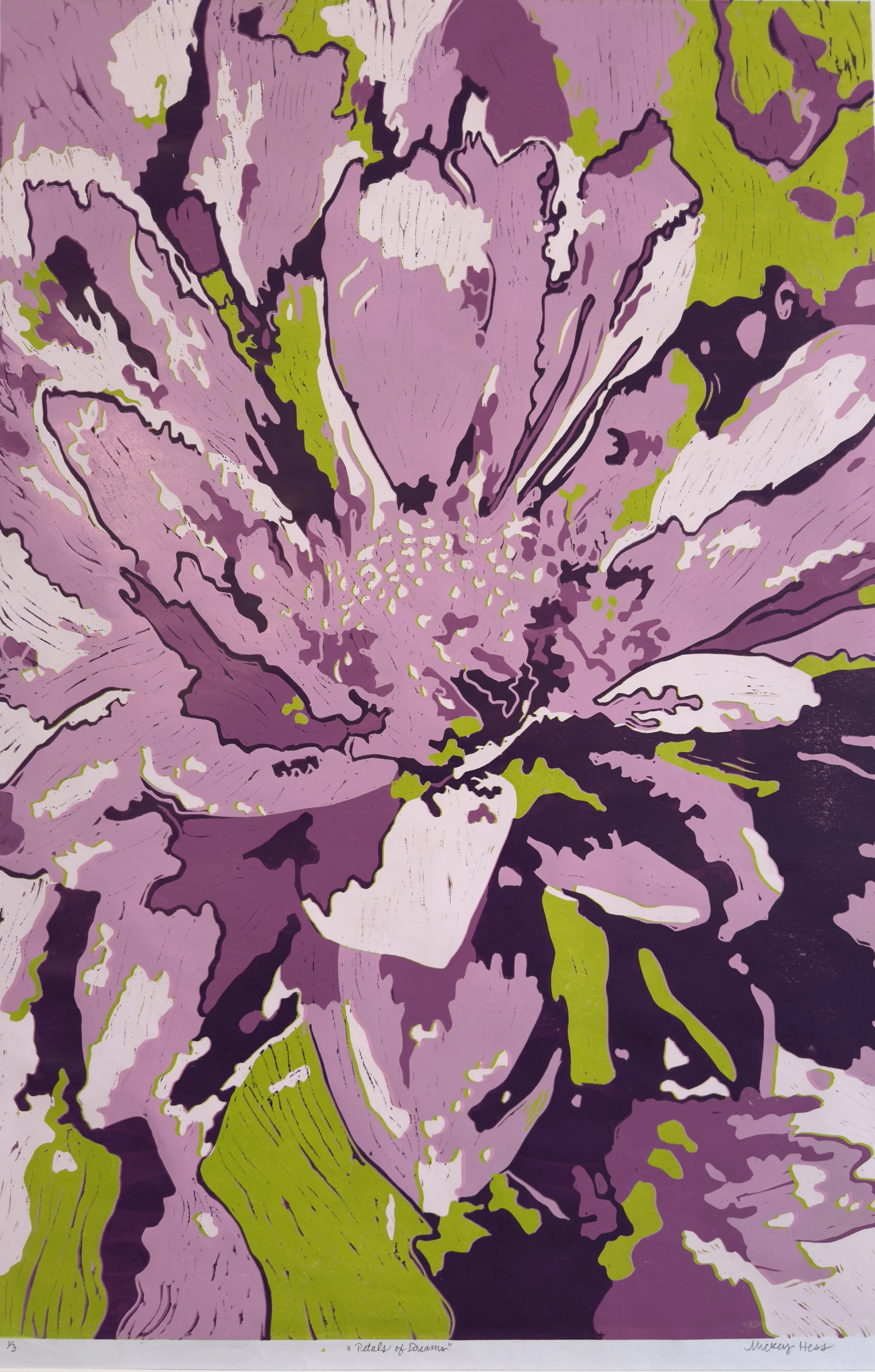 24” x 36” “Petals Of Dreams” Four-color reduction Linoleum Print