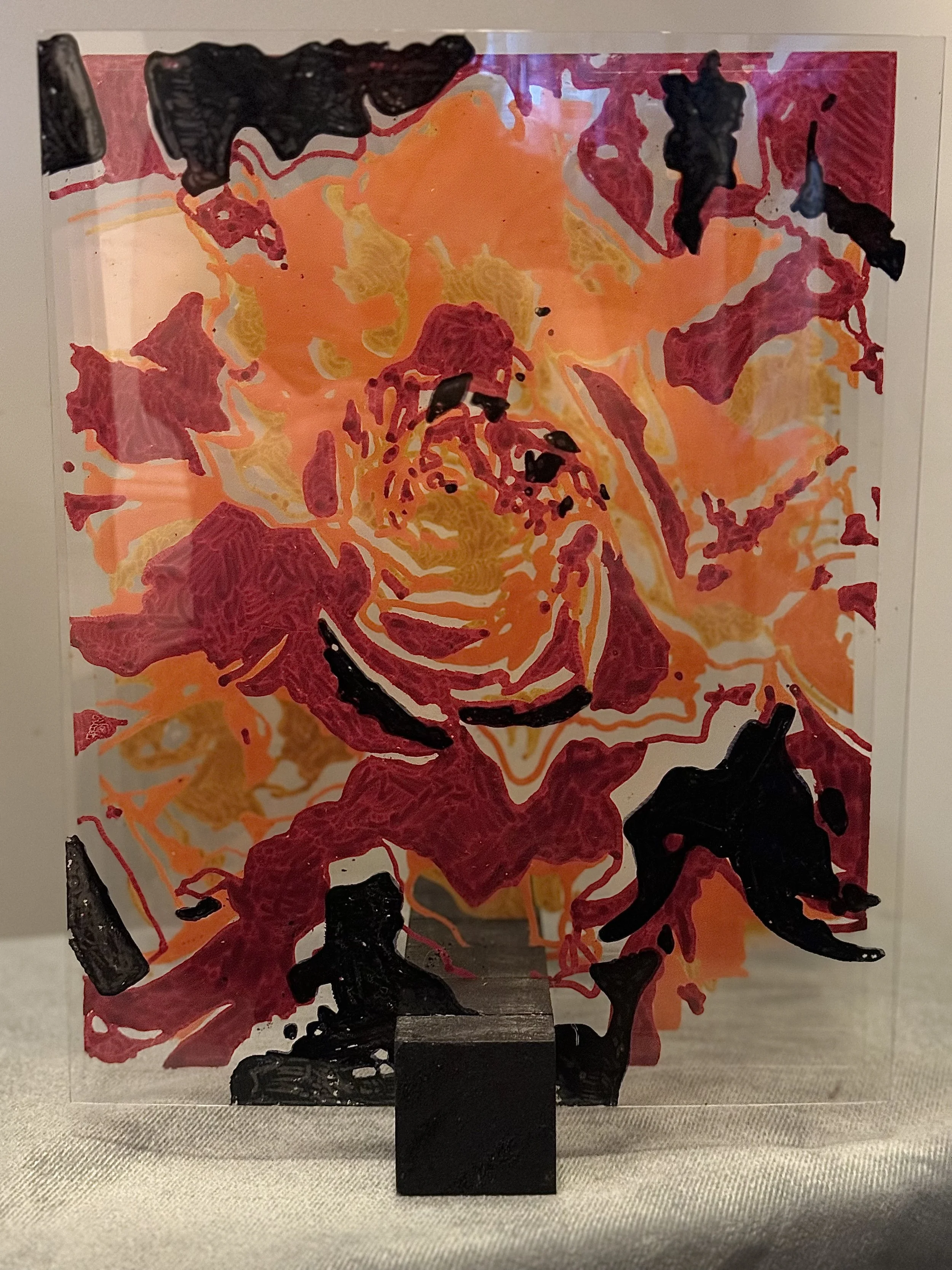 “Blossom in Suspension” acrylic on plexiglass 2023